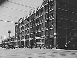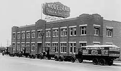 In 1887, the Burbank Furniture Manufacturing Company was the town's first factory.[42] In 1917, the arrival of the Moreland Motor Truck Company changed the town and resulted in growing a manufacturing and industrial workforce. Within a few years, Moreland trucks were seen bearing the label, "Made in Burbank."[43] Watt Moreland, its owner, had relocated his plant to Burbank from Los Angeles. He selected 25 acres (100,000 m2) at San Fernando Blvd. and Alameda Avenue. Moreland invested $1 million in the factory and machinery and employed 500 people. It was the largest truck maker west of the Mississippi.