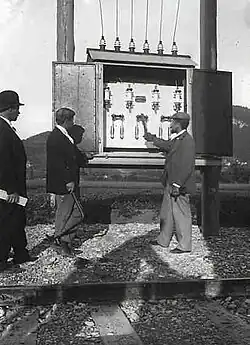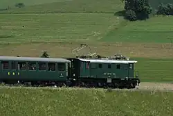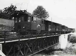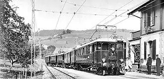 The positive experience with three-phase operations on the Luzern–Stans–Engelberg railway (Stansstad-Engelberg-Bahn) and especially the influence of the electrical engineer Emil Blattner, who was both professor of electrical engineering at the Burgdorf College of Technology (now part of the Bern University of Applied Sciences) and a councillor of Burgdorf, led to a bold decision by the Burgdorf-Thun Railway to electrify the line at 750 volts and 40 hertz three-phase from the start of operations on its relatively long line.[2] Permission to use a high voltage was granted by the Railway Department without regard to the safety of passengers and staff. The electric operations enabled a tight timetable for the time, which was useful in view of the many connections in Burgdorf, Konolfingen and Thun. A contract was signed with Brown, Boveri & Cie. for the supply of electrical equipment and Motor AG was awarded the contract to supply power through the new Kander power station near Spiez.