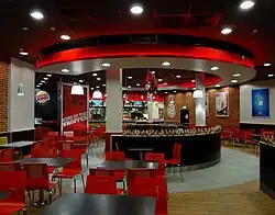 In October 2023, Tom Curtis, president of Burger King U.S. & Canada, announced a new store design at its annual franchisee convention in Canada, branded "The Sizzle". The company planned to remodel existing Burger King locations with a new look inside and outside, to tackle slowing business after the 2020 coronavirus pandemic. The overhaul plan included more kiosks, dedicated pickup areas for mobile app orders, food-ordering platforms like Doordash, Uber Eats, and Grubhub, and an improved drive-thru service. In 2023, Burger King remodeled several locations in the United States with the "Sizzle" concept.[65] While the remodel plan was an overhaul to the entire restaurant, Burger King was also investing in a "Refresh" initiative in order to replace equipment and upgrade technologies. By the end of 2023, Burger King completed 264 remodels and exited the year with 46% of its restaurants with a modern image.[66]
