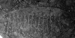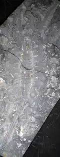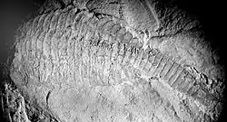 Trace fossils are associated with many Burgess Shale-type deposits.[18] They are often associated with the innards of soft-bodied organisms,[19] and are particularly prevalent under the carapaces of bivalved arthropods.[20] Burrowing organisms seem to have used the high-sulfur decay fluids as a nutrient source when farming bacteria in the microenvironment under the carapaces, indicated by their repeated uses of individual burrows.[20]