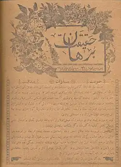 Burhani-Hagigat (Azerbaijani: Bürhani-Həqiqət, برهان حقیقت) was an Azerbaijani literary, socio-political magazine published in Yerevan in 1917. It was the first Azerbaijani-language publication published in Yerevan since the closure of the magazine Lek-Lek. It was published twice a month on eight pages from January 14 [O.S. January 1] to July 12 [O.S. June 29], 1917. Nine issues were issued in total. The name consists of the Arabic words burhan ('proof') and hagigat ('truth').[1]
