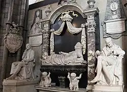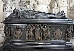 - ^ The position of the tomb of King James was lost for two and a half centuries. In the 19th century, following an excavation of many of the vaults beneath the floor, the lead coffin was found in the Henry VII vault.[23]