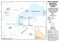 - ^ a b c d e f g h i j k l m n o p q r s t u v "Burke and Wills "Plant Camp" (entry 645622)". Queensland Heritage Register. Queensland Heritage Council. Retrieved 1 August 2014.
