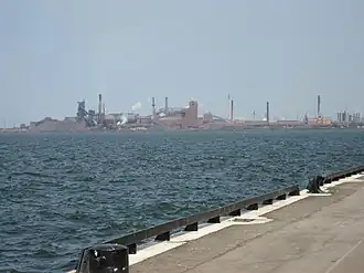 The Hamilton-Oshawa Port Authority, formerly known as Hamilton Harbour Commission, handles over 12 million metric tonnes of cargo through over 700 vessels each year. This ranks Hamilton as the busiest of all the ports of Canada's great lakes and 28% of all movements on the St. Lawrence Seaway System.[9] In 2006 Total ships in and out of the harbour was 739; Domestic/U.S.: 577 (78%), International: 162 (22%) from countries including Malaysia, Philippines, Russia and Brazil. Percentage of Imports: 87%, Percentage of Exports: 13%. International arrivals at the port grew from 130 ships in 2005 to 162 ships in 2006. In 2006 most of the materials arriving at the port include raw materials including iron ore and coal for steelmaking at Stelco and Dofasco, as well as imported steel from Brazil. The port also accepted 24,000 litres (5,280 Imp gallons) of bulk Jamaican rum. The oddest new arrival was windmill blades (some more than 80 feet (24 m) long) destined for wind farms in southern Ontario. This is the first year windmill parts have arrived in the port. Exports include 500,000 metric tonnes (550,000 short tons) of agricultural products including grain.[10]