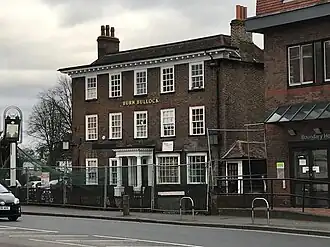 Returning to the London area, in 1939 Bullock was a licensed victualler at the Regent Arms in Westminster.[8] He later became the licensee at the King's Head, an old coaching inn next to Mitcham Cricket Green and the cricket club pavilion, and after his death in 1954 the inn, which is a Grade II listed building, was renamed the "Burn Bullock" in his honour. The pub closed in 2013 and was destroyed by fire on 19 April 2024.[9]