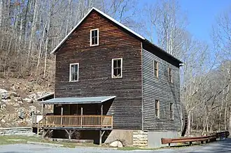 Bush Mill, also known as Bond Roller Mill, is a historic grist mill located near Nickelsville, Scott County, Virginia. It was built in 1896, and is a three-story, log and timber frame building on a limestone foundation. It has a front gable roof sheathed in metal. It measures 39 feet, 9 inches by 30 feet, 4 inches. The mill has a 24-foot (diameter) and 4 feet wide overshot steel waterwheel added in the 1920s, which is intact and remains functional. The building is maintained by the Nickelsville Ruritan Club.[3]
