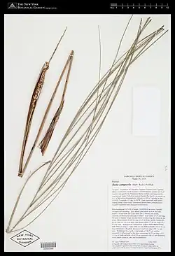 It was first collected by the Swiss physician and botanist Émile Hassler in Paraguay in the Sierra de Mbaracayú between 1898 and 1899, and in Piribebuy in 1900, according to the labels on his herbarium specimens.[4][5] It was formally described by João Barbosa Rodrigues in the 1900 published part of the Plantae Hasslerianae as Cocos campicola.[1][5] Subsequently, it was never seen again.[4]