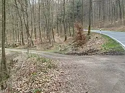 The small Butterpfad near the parking lot in the vicinity of the Obere Mühle, Rengsdorf, to the right the street to Hardert, to the left another hiking trail
