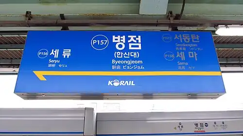 2. ^ a b "병점역" (in Korean). KRIC. Retrieved 2015-12-07.