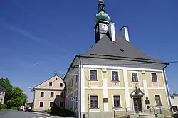 The Baroque town hall built in 1716–1719 is unique with its high gabled roof and clock tower in all four directions.[3][8]