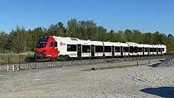 The Bytown and Prescott Railway (B&PR) was a railway joining Ottawa (then called Bytown) with Prescott on the Saint Lawrence River, in the Province of Canada. The company was incorporated in 1850, and the first train ran from Prescott into Bytown on Christmas Day, 1854. The 84 kilometres (52 mi) railway, Ottawa's first to outside markets, was initially used to ship lumber collected on the Ottawa River for further shipping along the St. Lawrence to markets in the United States and Montreal.[1]