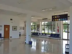 The airport has two runways: RWY03 measuring 2,076m by 45 meters, and RWY21 measuring 2,241m by 45m. It also features a platform of approximately 43,000 square meters. The passenger terminal is located on the ground floor of the main building and includes the departures, arrivals, cafeteria, services, and administration offices area. The airport also has a service building and a general aviation area, which has hangars, warehouses, and offices.
