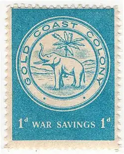 A 1943 war savings stamp of the Gold Coast, reflecting the same elephant and palm tree motif as Côte d'Or logo