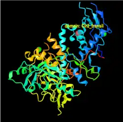 The best-aligned structural analog of C4orf51, generated by I-TASSER, contains Clr2_transil, a domain involved in transcriptional silencing.[17][18] Per Origene, migration of a C4orf51 rabbit polyclonal antibody in gel resulted in a band at 23 kDa and at ~44-46 kDa, suggesting that C4of51 may form a dimer.[19]