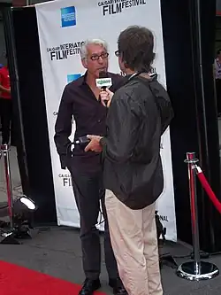 Niv Fichman being interviewed by a reporter with CJSW at the 2008 Calgary International Film Festival opening gala showing of Blindness.