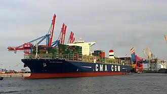 CMA CGM Kerguelen is a 17,722 TEU very large UK flagged Explorer class container ship owned by the French shipping company CMA CGM. As of August 2015, it was the largest container ship in the fleet of CMA CGM. The ship is named for French-Breton naval officer and explorer Yves-Joseph de Kerguelen-Trémarec. The Captain of the Ship is Captain Lester John Miole MM.