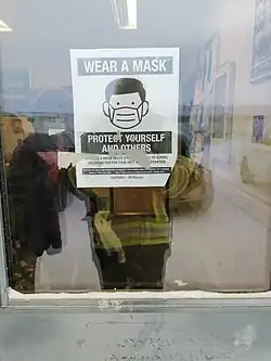 Starting March 25, air entry into Nunavut by non-residents was prohibited, with exemptions granted for critical medical workers. Residents returning to the territory are required to quarantine for 14 days at a hotel in either Edmonton, Ottawa, Winnipeg, or Yellowknife before flying back. They are monitored by security guards enforcing the quarantine, and are provided with meals.[20] These services are paid for by the government; on May 6, Premier Savikataaq backpedalled on a proposal to require these hotel stays be covered by the traveller (at a cost of $2,100 per person), as "travel at this time is a risk and we don't want to undo all the hard work we have done."[78] Exceptions were later made for those receiving medical treatment in Yellowknife.[79] The travel advisory against in-territory travel ended June 1, but other restrictions remained.[45]