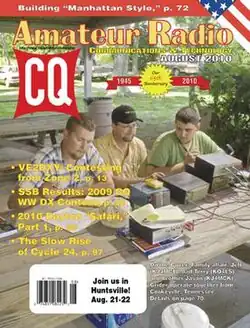 CQ Amateur Radio (also known simply as CQ or CQ magazine, and formerly as CQ: The Radio Amateur's Journal) is a dormant magazine for amateur radio enthusiasts first published in 1945.[2] The English language edition is read worldwide; Spanish language edition is published in Spain, with some translations of articles from the English language edition, and some original European content. The magazine was also published in France with partial translation of the original edition between 1995–2000 (ISSN 1267-2750). Published by CQ Communications, the title is based on the radio call "CQ".[3]