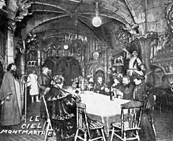 The Cabaret du Ciel (Cabaret of Heaven) was a well-known cabaret in the Montmartre district of Paris.[1] The Cabaret du Ciel was an early version of modern theme restaurants, with a theme centered around celestial concepts connected to the afterlife in Paradise. The cabaret was located next to the Cabaret de L'Enfer (Cabaret of Hell) at the same address at 53 Boulevard de Clichy.[1]