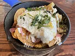 The restaurant offers American, Cuban,[1] Mexican, Southwestern, and Spanish cuisine.[2][3][4] The menu has included enchiladas with butternut squash,[5] tacos with brisket, and tamales with Ahi tuna[6] or Dungeness crab.[7] Cactus has also served antojitos, salads, soups, polenta cakes, sautéed bananas in rum,[8] and margaritas.[6]