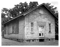 The Cadentown School served as an important center for the Cadentown community, a small village situated on about forty acres of land in the eastern part of Fayette County, Kentucky. The village was created by an organized series of land lot purchases from a white farmowner Owen Caden[2] who had purchased the land for the purposes of selling it in 1-8 acre lots to African-Americans and Civil War refugees seeking to start a new life. In addition to private homes, the community built public roadways and buildings, several of which are still standing today: two historic churches, a fraternal order lodge. The Cadentown Baptist Church was the first of the public buildings built by the community in 1879. The congregation offered a portion of its church lot for the construction of a school.[3]
