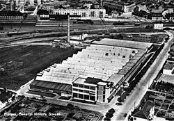 General Motors was looking for a suitable location for an assembly plant in Switzerland in the 1930s.[4] Guido Müller, the then city president of Biel, offered a finished factory and tax exemption for five years.[4] On 2 May 1935, "General Motors Suisse" was founded in Biel/Bienne.[4] The company register derogates from 1 May 1935.[5] The first vehicle was produced on 5 February 1936.[4] Until the outbreak of World War II, about 2,000 vehicles were produced each year.[4]