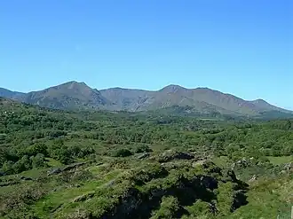 The Caha Mountains (An Cheacha in Irish) are a range of low sandstone mountains on the Beara peninsula in south-west County Cork, Ireland. The highest peak is Hungry Hill, at 685 m (2,247 ft). Other notable peaks include Knocknagree, Sugarloaf Mountain, Eskatarriff, Knocknaveacal, Derryclancy, Nareera, Killane Mountain and Baurearagh Mountain.[3]