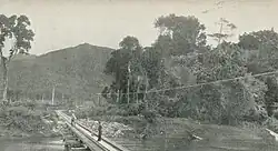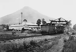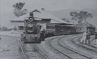 The Cairns-Mulgrave Tramway was a private tram line from Cairns to the Mulgrave River in Queensland, Australia. It was built until 1897 to serve the Mulgrave Central Sugar Mill, built in 1895. The line, which led through difficult terrain including dense jungle, was built by the Cairns Divisional Board, later renamed Cairns Shire Council, at a cost of £15,319. The line originally ran from Cairns to Nelson, later renamed Gordonvale. In 1898 it was extended to Aloomba, and in 1910 it was finally extended to Babinda, over a length of 50 kilometres (31 mi). The end point in Cairns was between Spence and Bunda Street, adjacent to the Queensland Government's Cairns railway station, with which the line was connected by a short distance.[2]