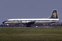 The initial aircraft type operated was the Douglas DC-7C, the first of which was leased from Sabena in November 1961.[2][3][22] This aircraft was lost in a fatal accident in Cameroon in March 1962. It was replaced the following month with another aircraft of the same type leased from the same source.[2]