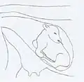 Double monsters are true twins that have not been completely separated. They can take various forms. Eusophalians and monophalians have two heads and four pairs of limbs, joined at some part of the body, typically the ventral and sternal walls.[19][23] Some monsters have a body normally formed with two pairs of limbs but are equipped with two heads (monosomians) or two heads and two thoraxes (sysomians). In contrast, sycéphalians and monocéphaliens have a double body joined into a single head or with parts of the head in common. Sometimes, one of the fetuses is incomplete, reduced to one or two limbs, and is implanted on the other fully developed fetus, living parasitically on it.[10][24]