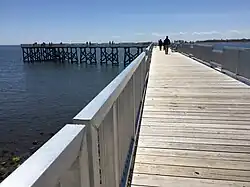 Additional buildings and sidewalks were constructed at Calf Pasture in 1935 with funding provided by the Federal Emergency Relief Administration.[6] Many of the buildings and sidewalks were washed away during the hurricane of September 1938. They were then replaced by Works Progress Administration workers.[7]