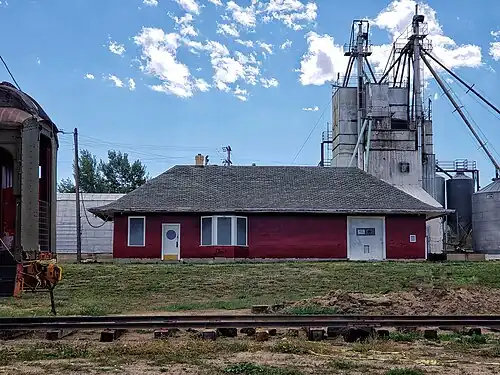 Calhan Rock Island Railroad Depot is a historic railroad station located in Calhan, Colorado, United States. The Chicago, Rock Island and Pacific Railroad provided transportation between Colorado Springs and Kansas until it went into bankruptcy in the early 1970s. The depot, built in 1906, still stands on its original site.[nb 1] The rails were removed and sold for scrap by 1994.[1][3]