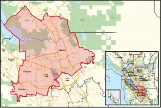 Under the 2020 redistricting, California's 17th congressional district takes up the Tri-City area of the San Francisco Bay Area, taking up the western borders of Alameda and Santa Clara Counties. The area in Alameda County includes the south side of the city of Fremont, and the city of Newark. The area in Santa Clara County includes the north side of the city of San Jose; part of the census designated place Alum Rock; and the cities of Milpitas, Santa Clara, Sunnyvale, and Cupertino.