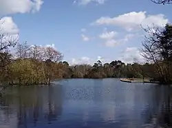 The country park is situated approximately 3 kilometres (1.9 mi) south of Wokingham and is bounded by Arborfield Garrison to the west, California to the east, the Nine Mile Ride to the south, and what was once Barkham common to the north. The site covers 150 acres (61 ha) features a six-acre (2.4 ha) lake.[3]