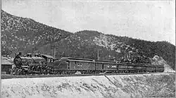 ![]() California Limited in Los Angeles, California, with engine No. 53 at the La Grande Station circa 1899 | |