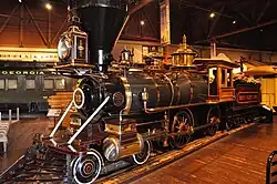 Nevada Short Line No. 1 – Baldwin-built 3 ft (914 mm) narrow gauge 2-6-0 (Mogul Type) constructed in 1879; on static display with a few cars and rests above all other trains on an elevated track; last time it was run was in 1939–40 for the Golden Gate International Exposition on daily reenactments of the 1869 Golden Spike ceremony.