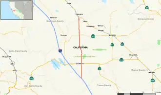 ![]() Map of central California with SR 165 highlighted in red | ||||