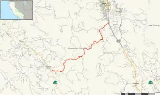 ![]() Map of Mendocino County in northwestern California with SR 253 highlighted in red | ||||