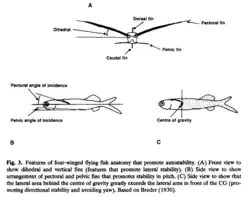 - ^ a b Breder, C.M. Jr. (December 1930). "On the Structural Specilization of Flying Fishes from the Standpoint of Aerodynamics". Copeia. 1930 (4): 114–121. doi:10.2307/1436467.
