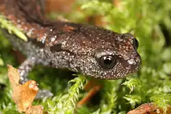 The California slender salamander (Batrachoseps attenuatus) is a lungless salamander[2] that is found primarily in coastal mountain areas of Northern California, United States as well as in a limited part of the western foothills of the Sierra Nevada, California, in patches of the northern Central Valley of California, and in extreme southwestern Oregon. This species resides primarily in a limited range within California as one of a handful quasi-endemic amphibians in the state.