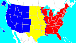 The original boundary ran northward from the Texas–New Mexico border. In early 1923 the boundary was moved to its present location, the Mississippi River, in order to balance the populations in the two regions.[4] The geographical separation of "K" and "W" prefixes applies only to radio and television broadcasting stations, and is not followed for weather radio, highway advisory radio, and time signal stations, nor does it apply to auxiliary licenses held by broadcast stations, such as studio-transmitter links and inter-city relay stations.