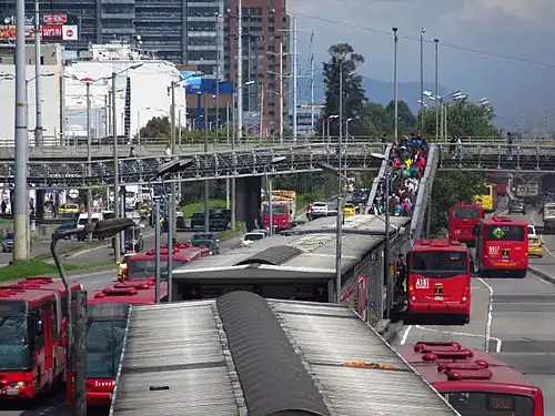 The simple station Calle 106 is part of the TransMilenio mass-transit system of Bogotá, Colombia, which opened in the year 2000.