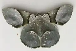 Adults have grey and olive-green wings with fine striations particularly on the hindwings.[2] Warren stated the "expanse of wings" to be 64mm.[2]