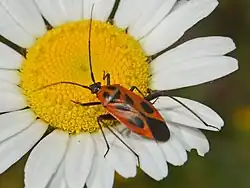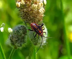 Calocoris nemoralis is usually red coloured with black dots.[6] This species presents many forms, with an enormous variability in colors, that may be white, black, gray, yellowish, greenish or blood red, with and without black spots.[5][7]