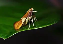 - ^ a b Giron, David; Lopez-Vaamonde, Carlos; Françoise Laurans; Takeda, Seiji; Ohshima, Issei; Guiguet, Antoine (2019-05-01). "Origin of gall-inducing from leaf-mining in Caloptilia micromoths (Lepidoptera, Gracillariidae)". Scientific Reports. 9 (1): 6794. doi:10.1038/s41598-019-43213-7. ISSN 2045-2322. PMC 6494848. PMID 31043653.