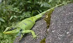 Calotes grandisquamis, the large-scaled forest lizard, is an arboreal, diurnal, insectivorous agamid lizard found in the evergreen rainforests of the Western Ghats of India; distributed from Agumbe to Agasthyamalai Hills.