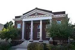 The structure was built between c.1917 and 1920 and replaced an earlier church on the site constructed in 1911 and soon deemed unsafe by the state fire marshall.[2] It is designed in the classical revival style and constructed of red brick with limestone accents.