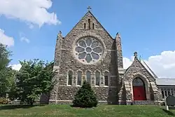 By 1872 the congregation had outgrown its original building. It built a stone church at the corner of Springfield Avenue and Beechwood Road. This building served the congregation until January 8, 1893. That Sunday morning the rector and sexton lit the gas lamps for the Sunday morning service. The Christmas greens caught fire; the building blazed to ruins in less than an hour.