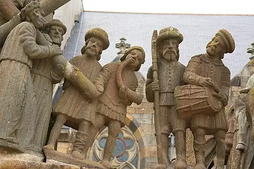 - All the people portrayed wear the dress worn at the time the Calvary was built rather than the dress appropriate to the time of Christ's life. This was a common trait with 17th-century Breton sculptors.