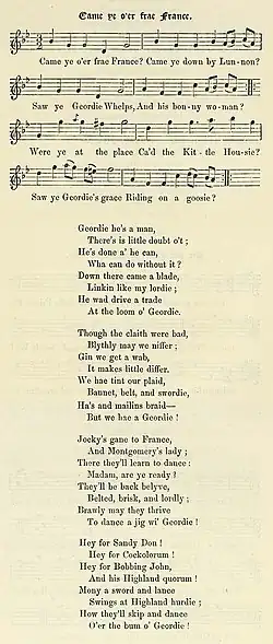 Cam Ye o'er frae France? is a Scots folk song from the time of the Jacobite rebellions of the 18th century. It satirises the marital problems of the Hanoverian George I.[1]